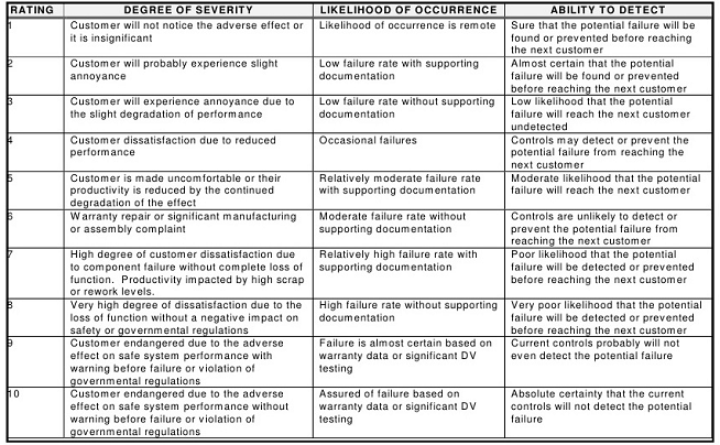 아래표와 같이 위험도가 클 수록, 발생빈도가 높을 수록, 감지를 잘 못할 수록 각각의 Rating은 올라갑니다. 고객사에 따라서 산업에 따라서 RPN 기준은 바뀔 수 있습니다.