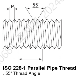 PF는 Parallel Pipe Threads의 줄임말로 나사의 경사는 없고, 나사산의 각도만 55º인 나사를 의미합니다. PF의 경우는 높은 압력(11500psi)과 높은 온도에서 사용 가능하며, 180℃ 이상의 온도에서 사용할 시 테프론 테이프 외 가스켓, O-Ring등으로 밀폐하는 것이 좋습니다.